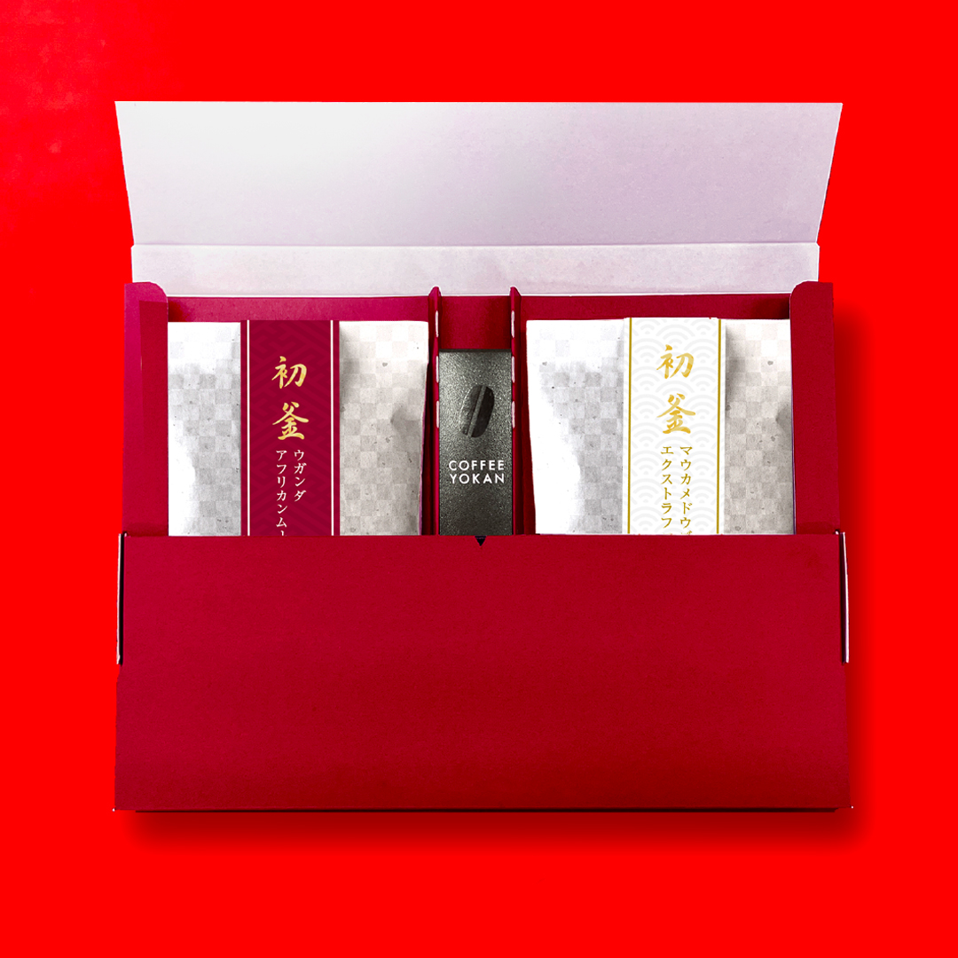 さらに今回は、「初釜」をより楽しんでいただけるよう、細かく挽いたコーヒー豆を北海道産小豆の餡に練り込んだ 珈琲羊羹 をセットにしました。